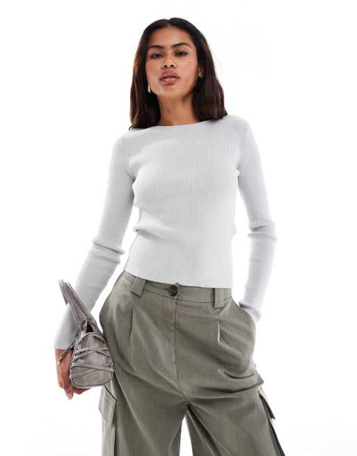 Something New - Corpcore - Top grigio a coste con apertura sul retro e allacciatura
