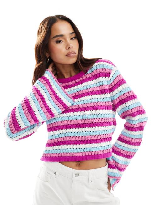 Something New x Cenit Nadir - Maglione corto all'uncinetto a righe rosa e blu
