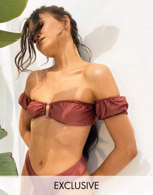 Esclusiva South Beach X Natalya Wright - Top bikini marrone con spalle scoperte