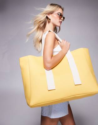 South Beach - Borsa shopping ampia in tela gialla con manico a contrasto