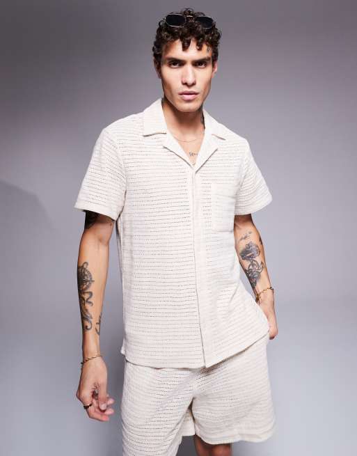 South Beach - Camicia da mare in maglia testurizzata color crema