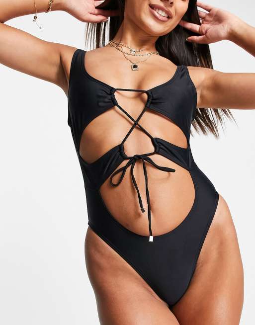 South Beach - Costume da bagno nero con cut-out e allacciatura