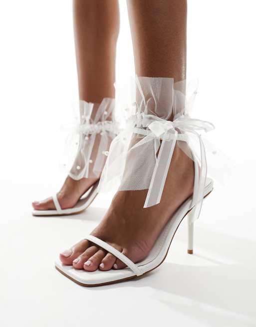 South Beach - Decorazione da sposa stile calzino per la caviglia con perle e volant