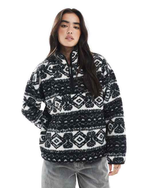 South Beach - Giacca in pile borg con zip corta e stampa monocromatica