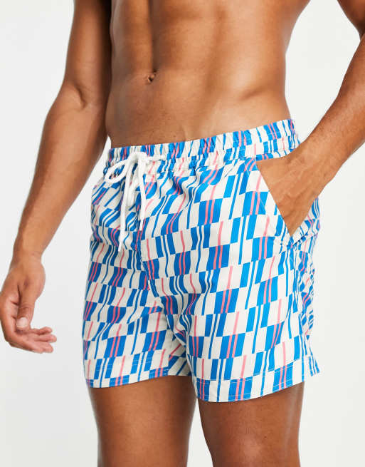 South Beach - Pantaloncini da bagno con stampa geometrica blu