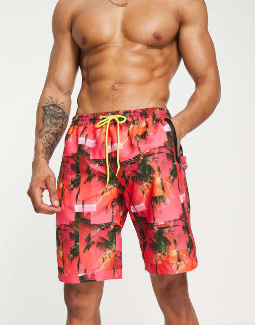 South Beach - Pantaloncini da bagno rosa tie-dye con zip bordata