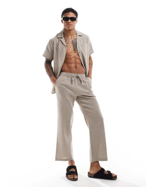 South Beach - Pantaloni da spiaggia testurizzati marroni in coordinato