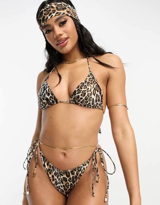 South Beach - Slip bikini mix & match con stampa leopardata e allacciatura laterale