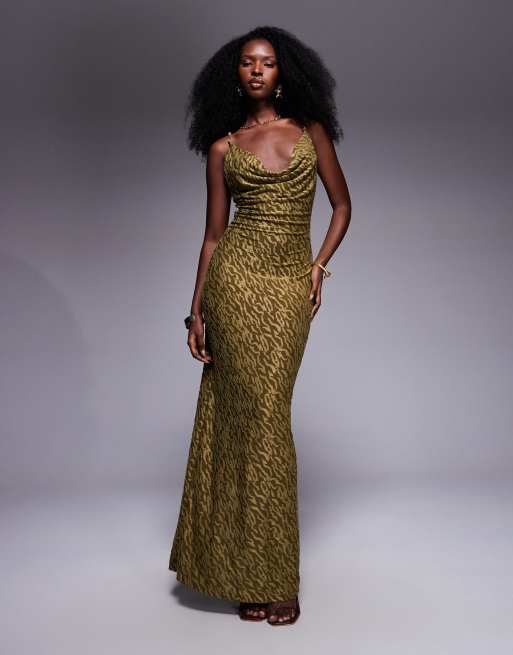 South Beach - Vestito da mare lungo verde oliva con scollo ad anello