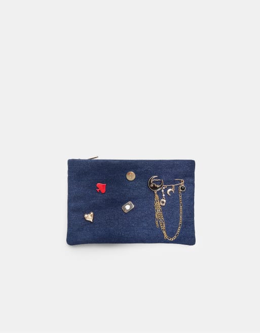Stradivarius - Beauty-case in denim blu medio con toppe