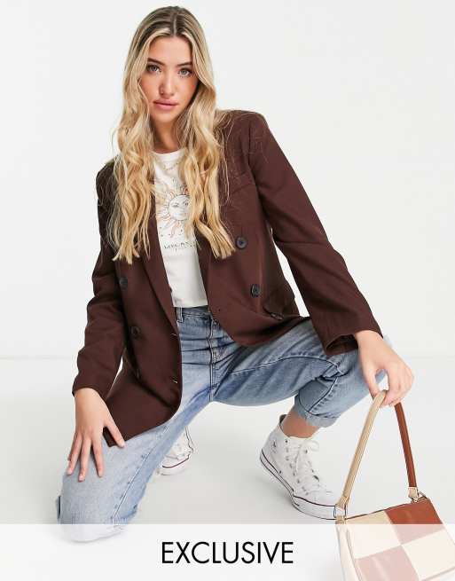 Stradivarius - Blazer doppiopetto dad fit color cioccolato