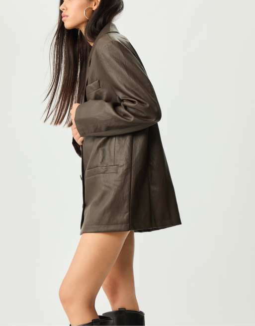 Stradivarius - Blazer oversize marrone in pelle sintetica