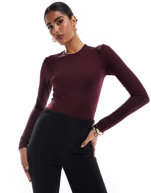 Stradivarius - Body a maniche lunghe in poliammide bordeaux