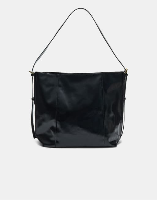 Stradivarius - Borsa a secchiello effetto pelle nera
