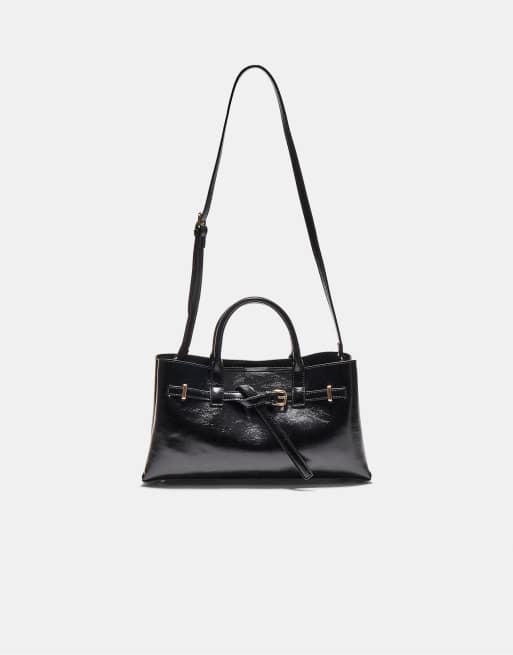 Stradivarius - Borsa shopping nera con cinturino