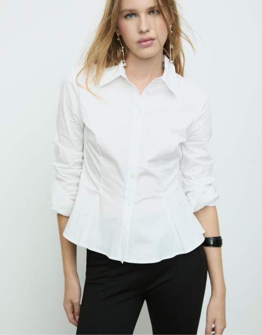Stradivarius - Camicia aderente bianca in popeline con peplo