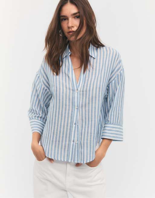 Stradivarius - Camicia blu navy in misto lino con maniche a kimono