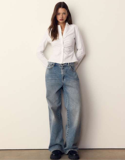 Stradivarius - Camicia raccolta in vita bianca tinta unita