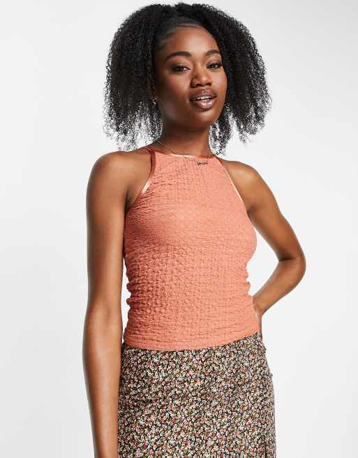 Stradivarius - Canottiera testurizzata color mattone stile anni '90