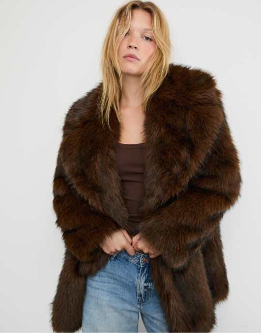 Stradivarius - Cappotto marrone vestibilità classica in pelliccia sintetica