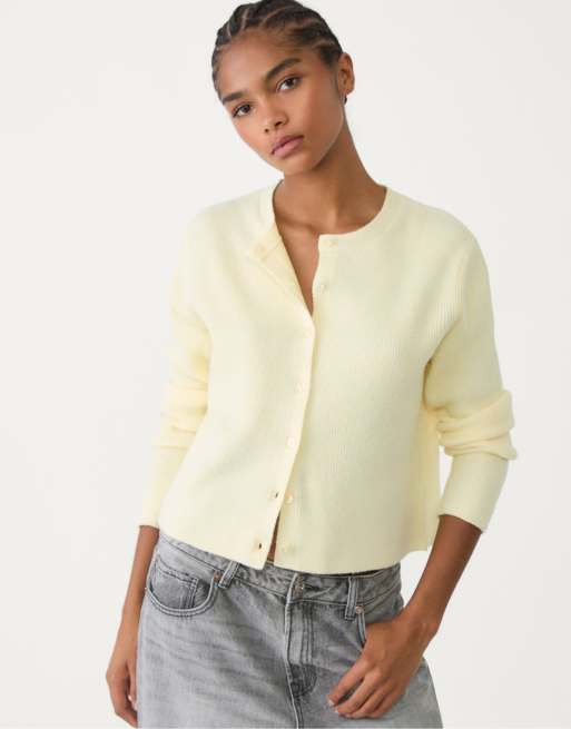 Stradivarius - Cardigan in maglia gialla a coste con bottoni
