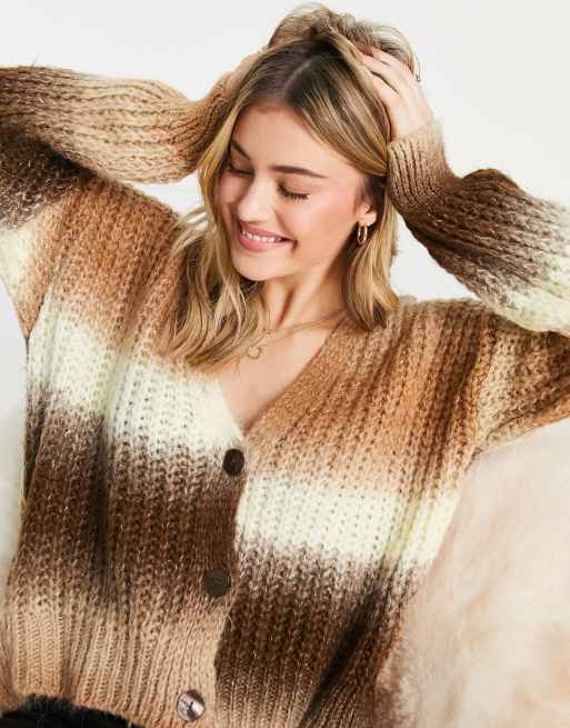 Stradivarius - Cardigan marrone a righe
