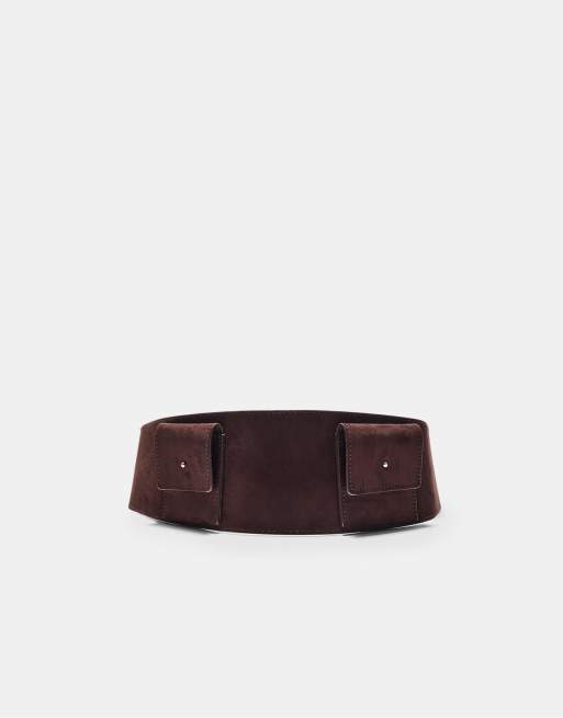 Stradivarius - Cintura con tasche in camoscio sintetico marrone