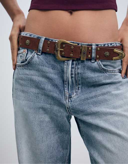 Stradivarius - Cintura marrone con borchie rotonde