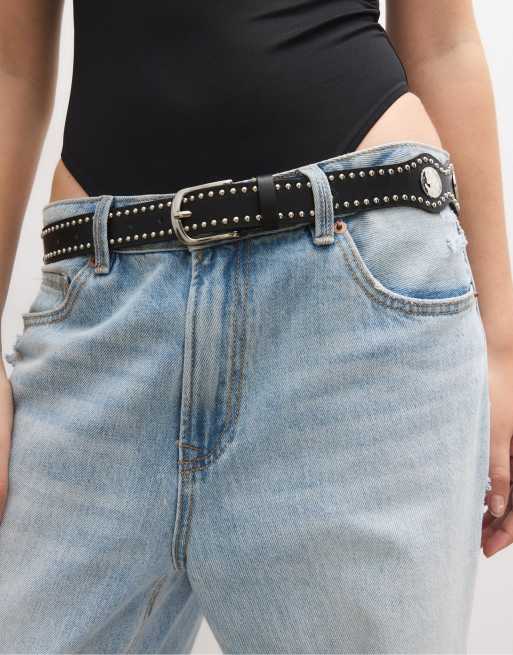 Stradivarius - Cintura ondulata nera con monete e borchie