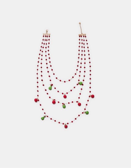 Stradivarius - Collana rossa con ciondoli con frutta
