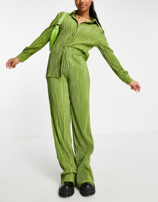 Stradivarius - Coordinato con camicia e pantaloni verde oliva a pieghe