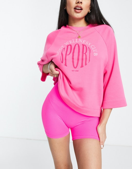 Stradivarius - Coordinato con felpa oversize e leggings corti rosa pop