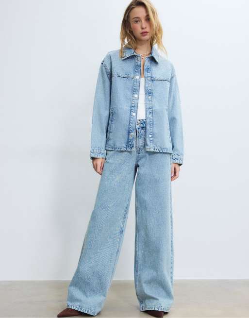 Stradivarius - Coordinato in denim azzurro medio con strass