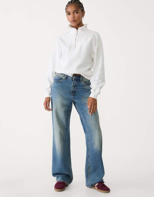 Stradivarius - Felpa accollata écru con zip