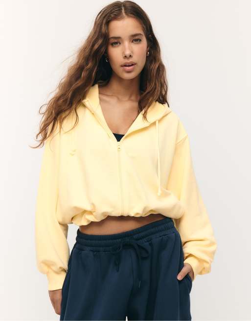 Stradivarius - Felpa bomber giallo pastello con cappuccio e stampa