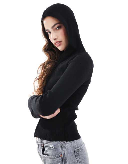 Stradivarius - Felpa con cappuccio nera con zip doppia