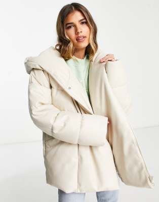 Stradivarius - Giacca imbottita oversize écru in pelle sintetica