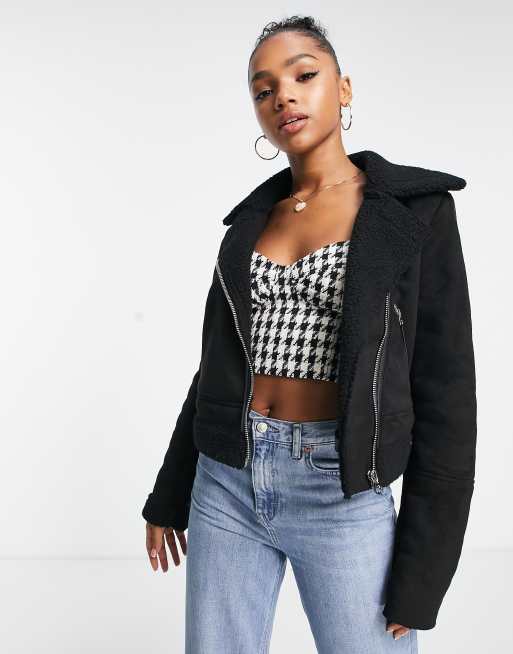 Stradivarius - Giacca stile aviatore corta nera