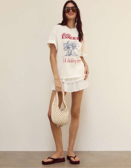 Stradivarius - Gonna pantalone morbida bianca con volant