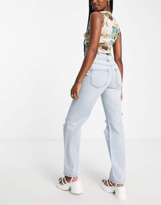 Stradivarius - Jeans dritti con strappi lavaggio chiaro