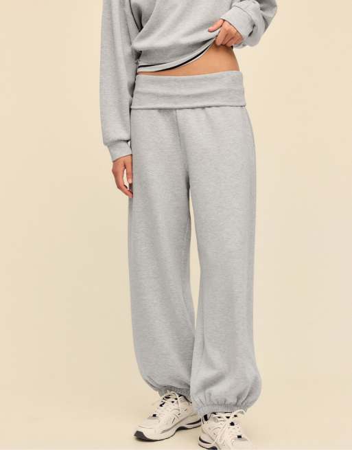 Stradivarius - Joggers a palloncino morbidi al tatto grigio mélange con risvolto in vita