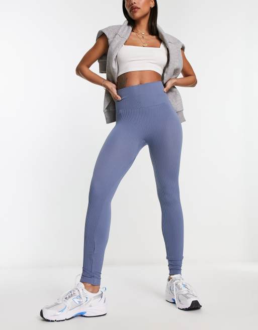 Stradivarius - Leggings a coste senza cuciture blu petrolio