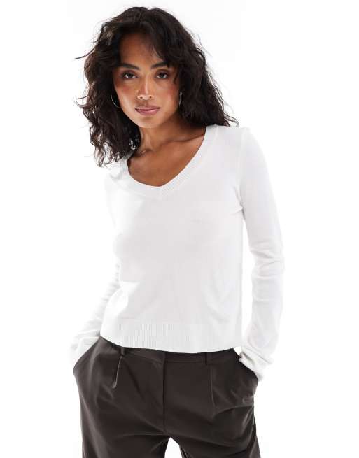 Stradivarius - Maglione color crema con scollo a V