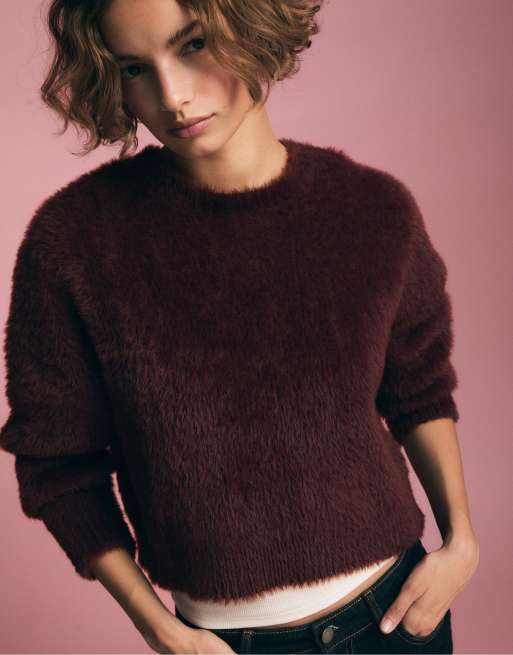 Stradivarius - Maglione in pelliccia sintetica color melanzana