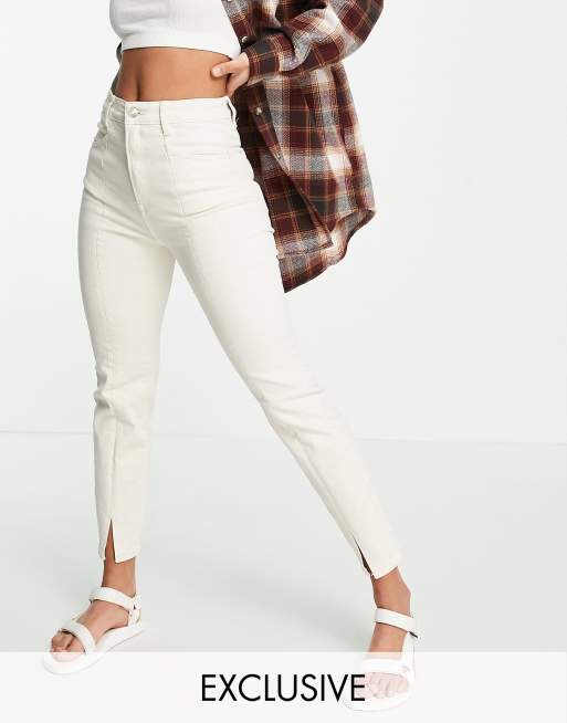 Stradivarius - Mom jeans elasticizzati con spacchi sul davanti color écru