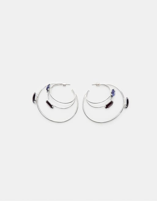 Stradivarius - Orecchini a cerchio grandi grigi con strass