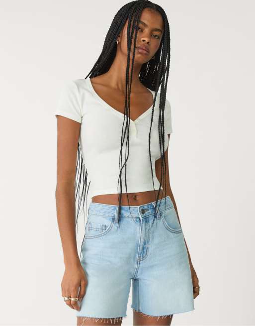 Stradivarius - Pantaloncini di jeans azzurri
