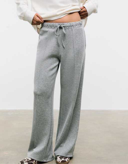 Stradivarius - Pantaloni a fondo ampio morbidi al tatto grigio mélange con cuciture a vista