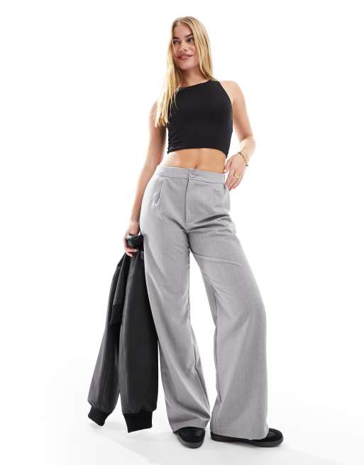 Stradivarius - Pantaloni dad comodi con fondo ampio grigio scuro