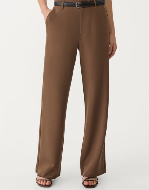 Stradivarius - Pantaloni eleganti fluidi marroni dritti con cintura